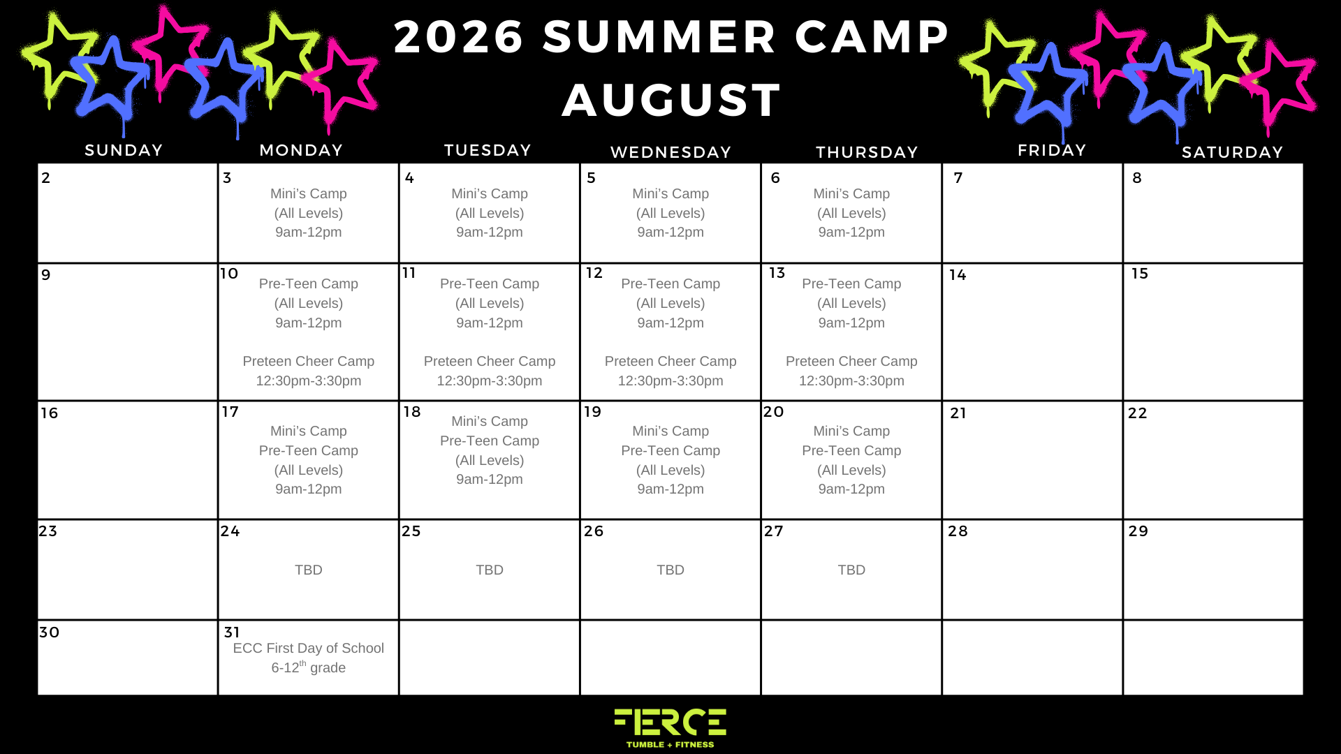 Summer Camp for tumblers 8-11 years old.